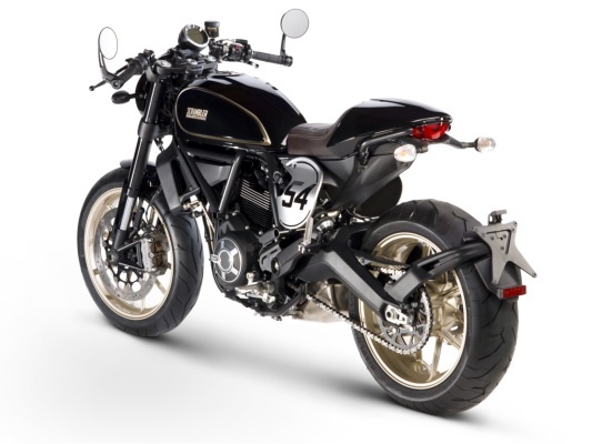 Комплектация Ducati Scrambler Cafe Racer оснащена механической коробкой передач, 0.8 литровым двигателем (75 л.с.) с расходом топлива 5 литров на 100 км. Стоимость данного мотоцикла составляет 789 000 руб.